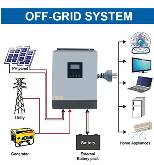 Hybrid Off Grid Inverter is equipped with MPPT solar charge controller to maximize and regulate DC power from the solar array for charging the battery bank. Transformerless design provides reliable power conversion in compact size.Besides, it’ s worry-free to start up motor-type loads such as refrigerators, motors, pumps, compressors and laser printers as well as electronic loads like TVs, Computers, power tool and battery chargers.
